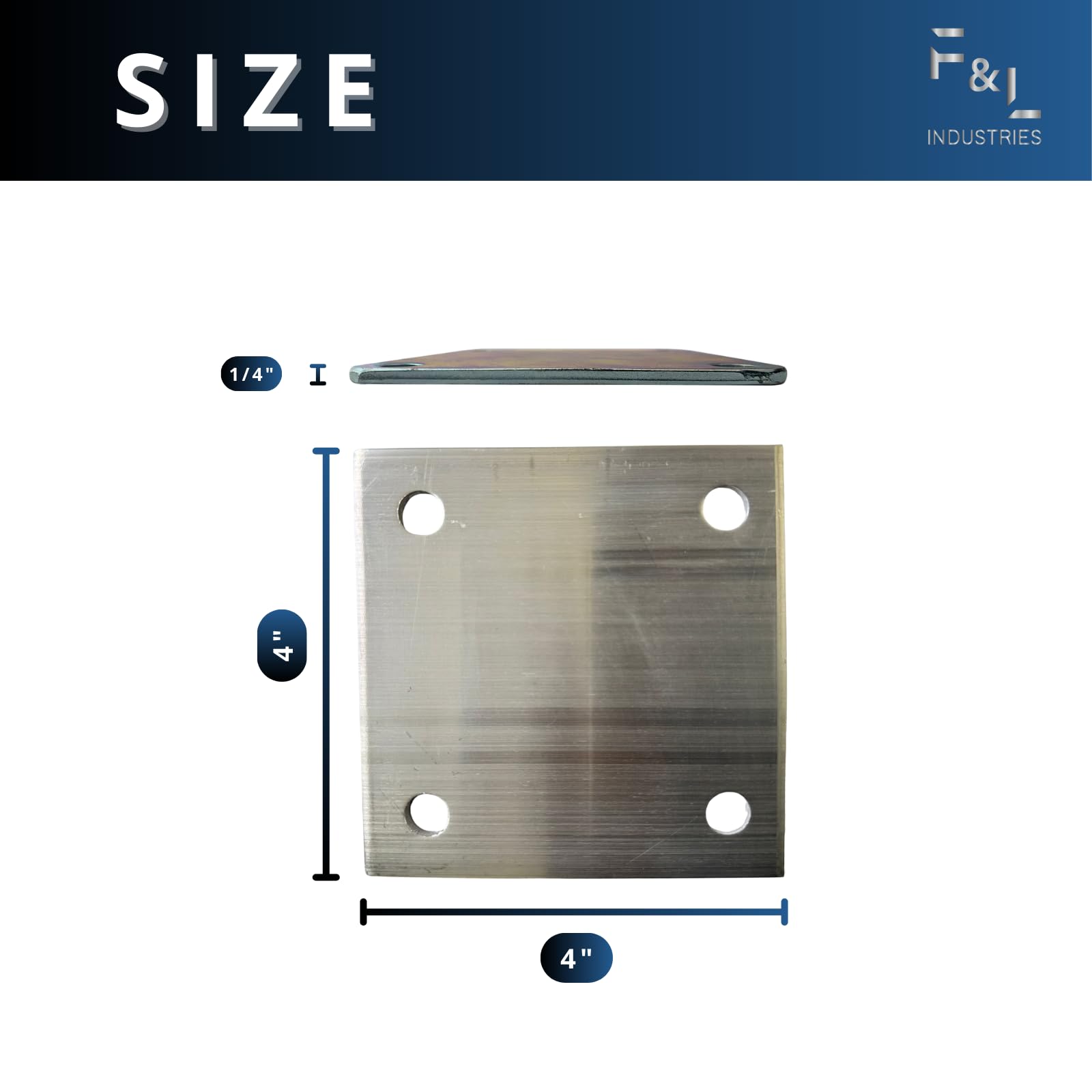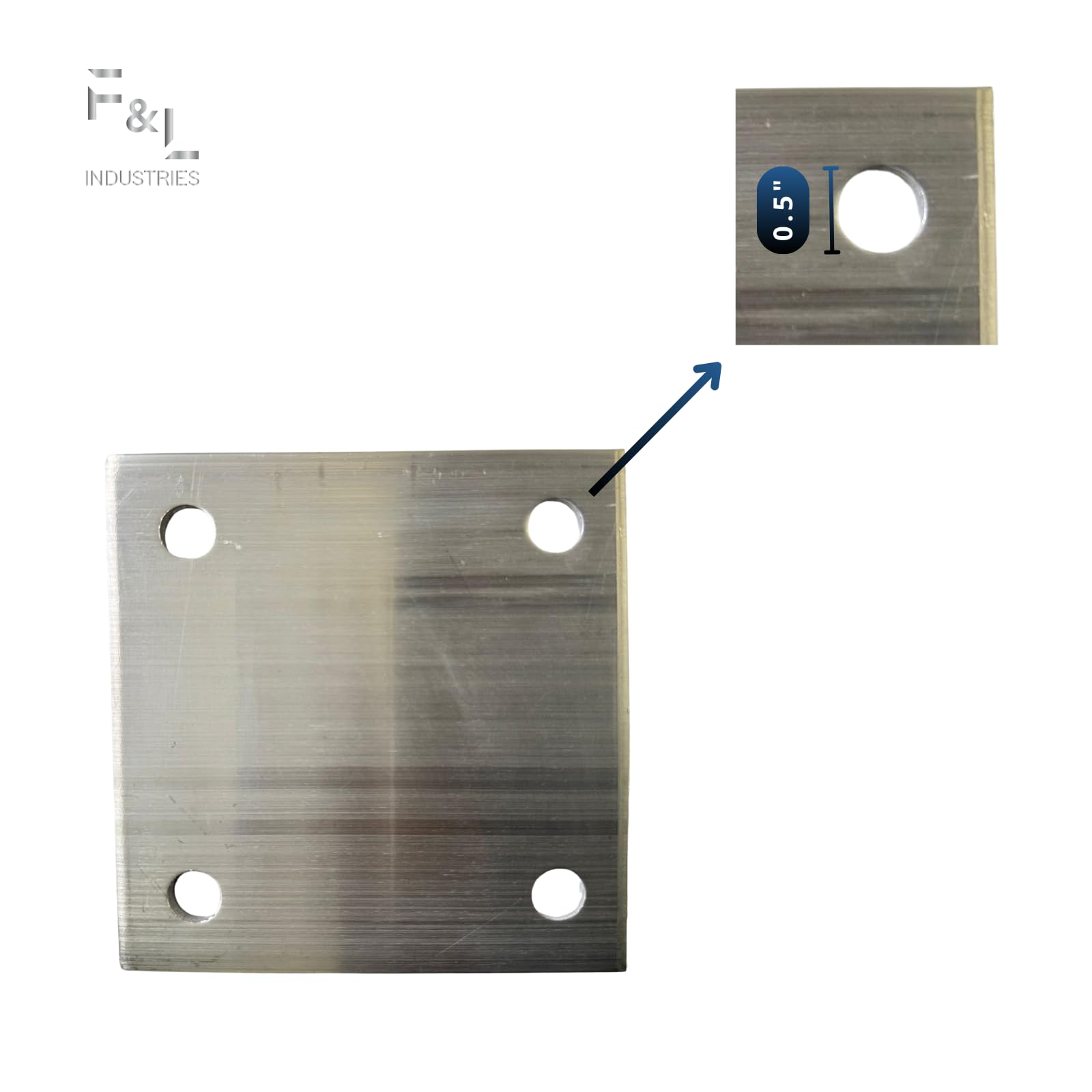 F&L 6061 T6 Aluninum Base Plate - Square Weldable Metal Base Plate with (4) .5" Holes – Heavy-Duty Mounting Plate for AC Stand, Construction & DIY – (4"x 4") – .25" Thickness