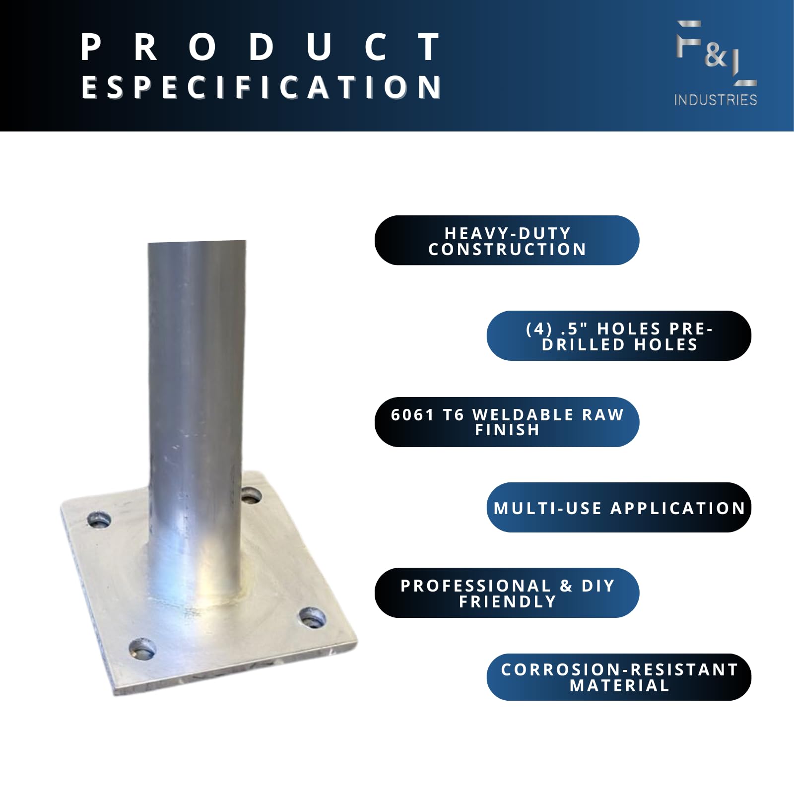 Upgrade your structural builds with the F&L Square Aluminum Weldable Metal Base Plate with (4) pre-drilled .5" holes — a durable and reliable solution for mounting, reinforcement, fabrication, and industrial projects. Made from premium-grade aluminum, this heavy-duty base plate delivers long-lasting strength, stability, and corrosion resistance for a wide range of applications. Perfect for securing AC ground stands, metal frameworks, machinery supports, or custom fabrication projects, it is engineered to handle demanding tasks in both professional and DIY settings. The pre-drilled 4-hole design ensures easy bolting, welding, or attachment to any structure, while the raw, weldable surface allows seamless integration into metalwork setups. Available in multiple size options, it provides versatile solutions for workshops, construction, manufacturing, and industrial environments. Choose F&L for dependable, high-quality hardware that combines precision, durability, and ease of use in every application, making it a must-have for professionals and DIY enthusiasts alike.