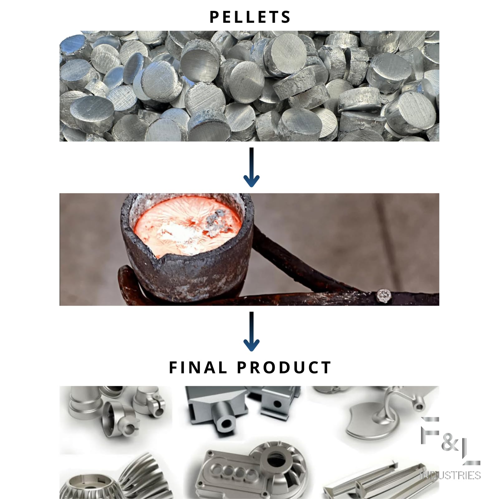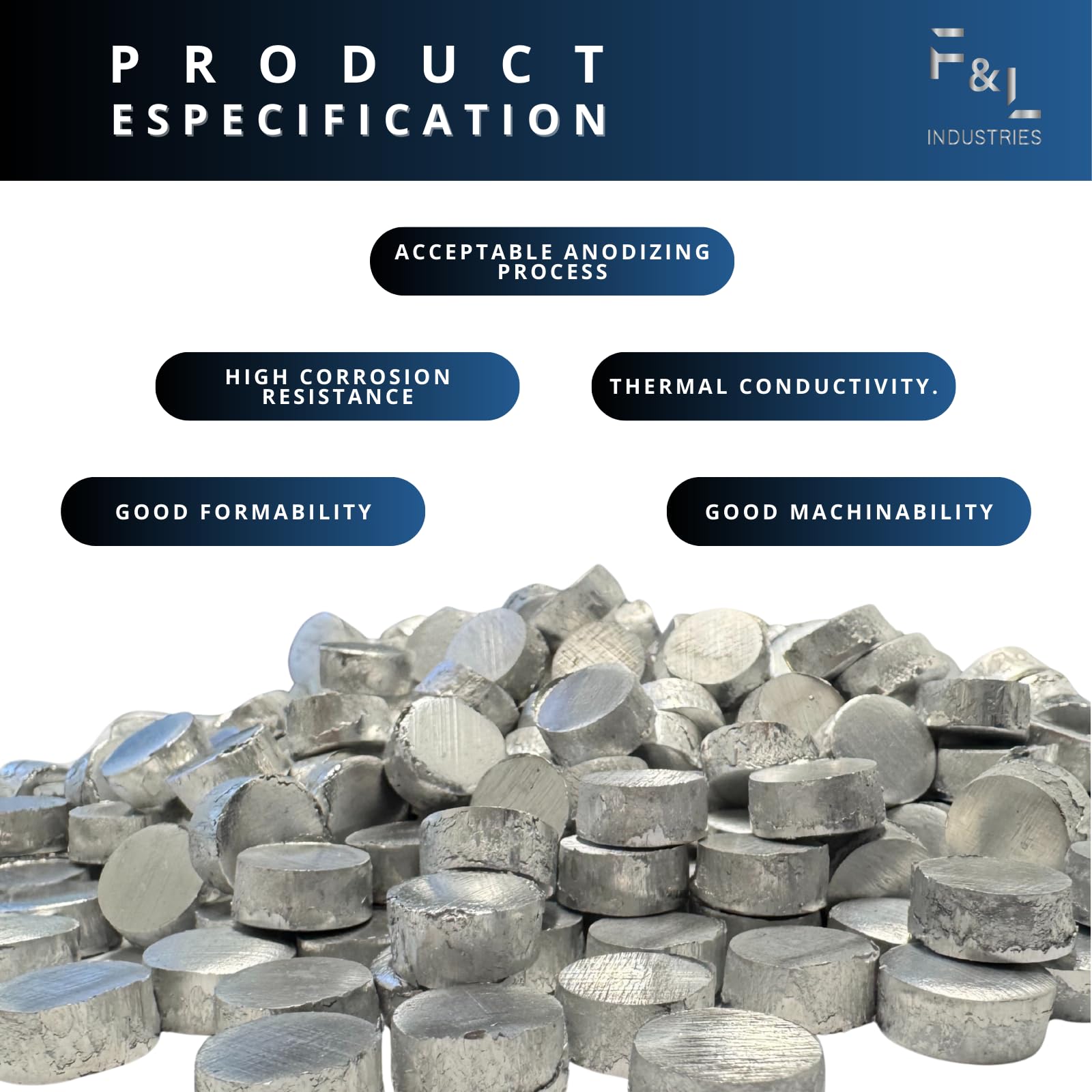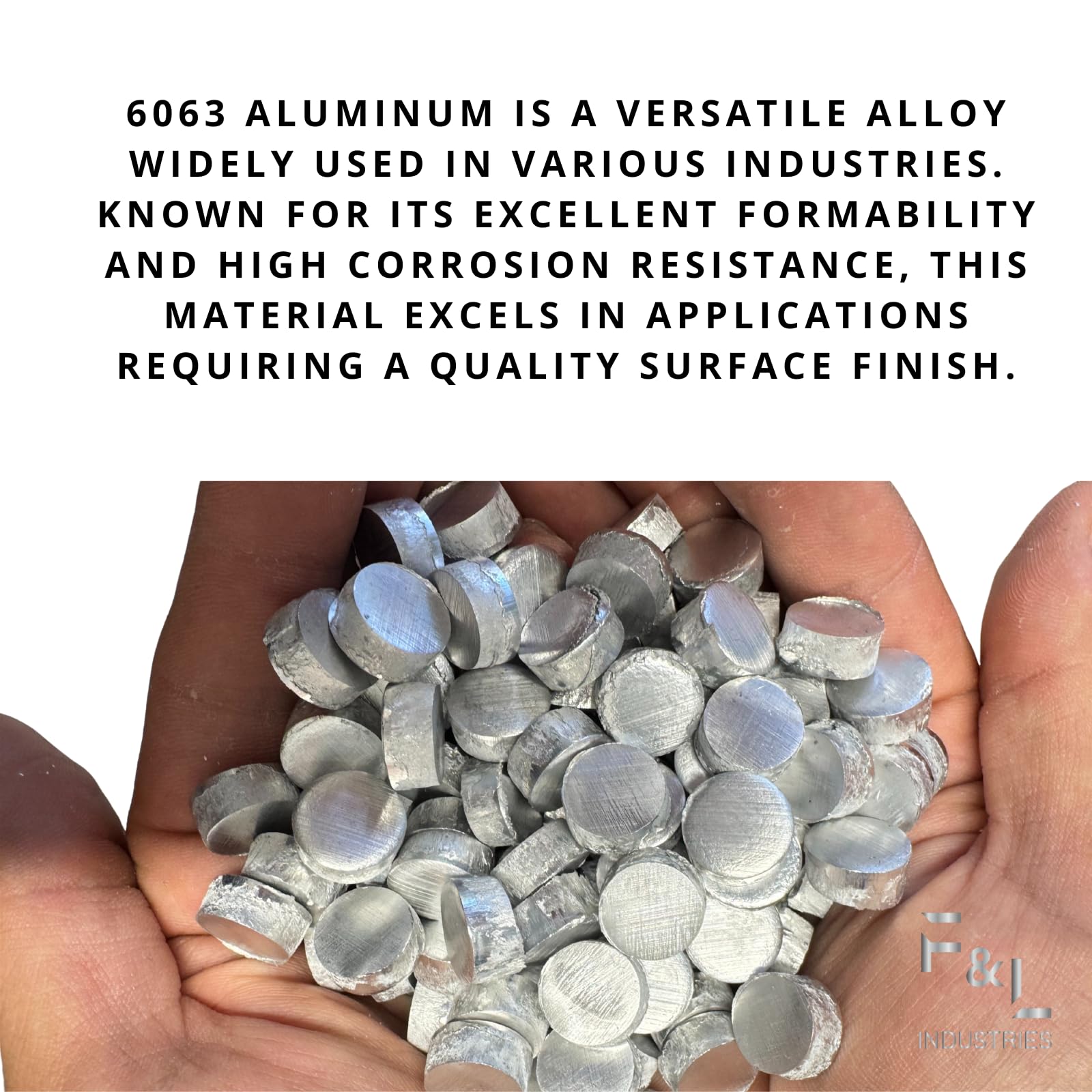 Upgrade your casting, melting, and alloying projects with F&L 6063 Aluminum Pellets, engineered from premium 6063 aluminum alloy for superior strength, workability, and corrosion resistance. Unlike pure aluminum, our 6063 alloy is specifically formulated with magnesium and silicon to deliver exceptional durability while maintaining excellent machinability and a smooth finish. These precision aluminum granules melt cleanly and pour evenly, making them ideal for industrial manufacturing, metal casting, sand casting, die casting, and CNC machining projects. They are also perfect for DIY metalworking, jewelry making, prototype building, and repair work. Manufactured to meet strict quality standards, F&L 6063 Aluminum Pellets provide consistent size, density, and performance for dependable results every time. Whether you’re creating structural components, decorative pieces, or custom aluminum alloys, these pellets are your go-to material for professional-grade outcomes. With excellent corrosion resistance, lightweight properties, and high thermal conductivity, this alloy is trusted by machinists, fabricators, and hobbyists alike.