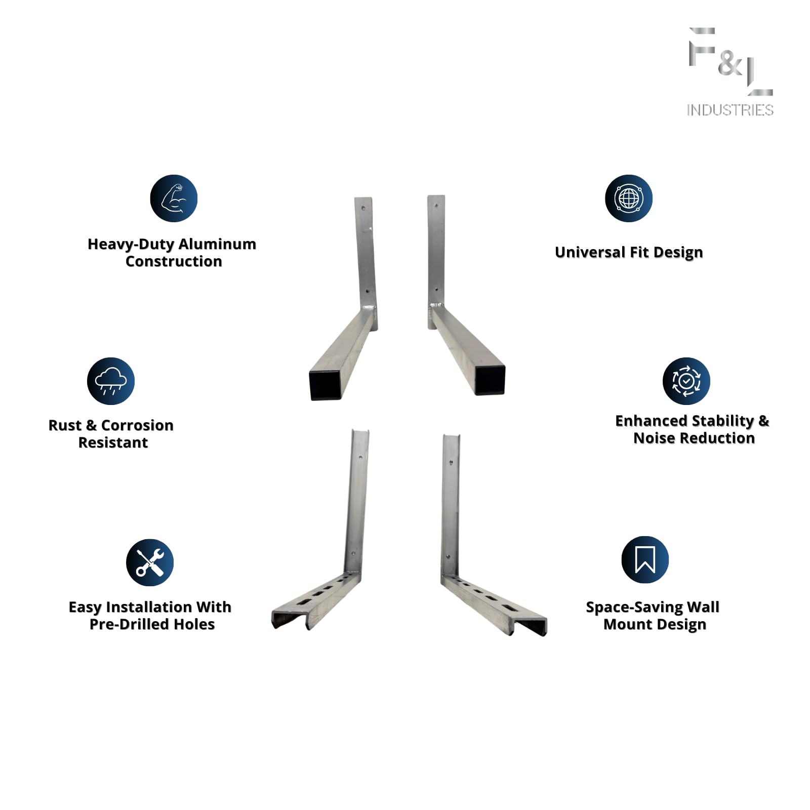 F&L Heavy-Duty Mini Split Wall Mount Bracket—Adjustable, Rust-Resistant Aluminum AC Support for Ductless Heat Pump Systems—Universal Fit, 700 lb Capacity. (18"x18")